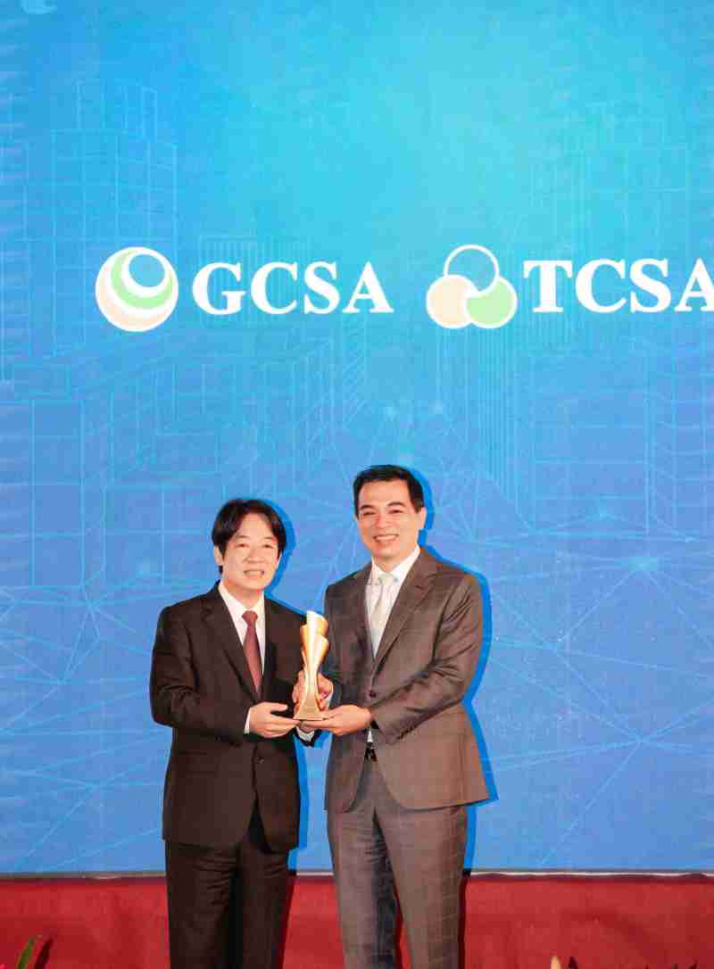达全方位永续表现获全球永续奖及台湾永续奖肯定,,由副总统赖清德颁奖 (左),,Wepay总经理柯富仁 (右) 代表领奖