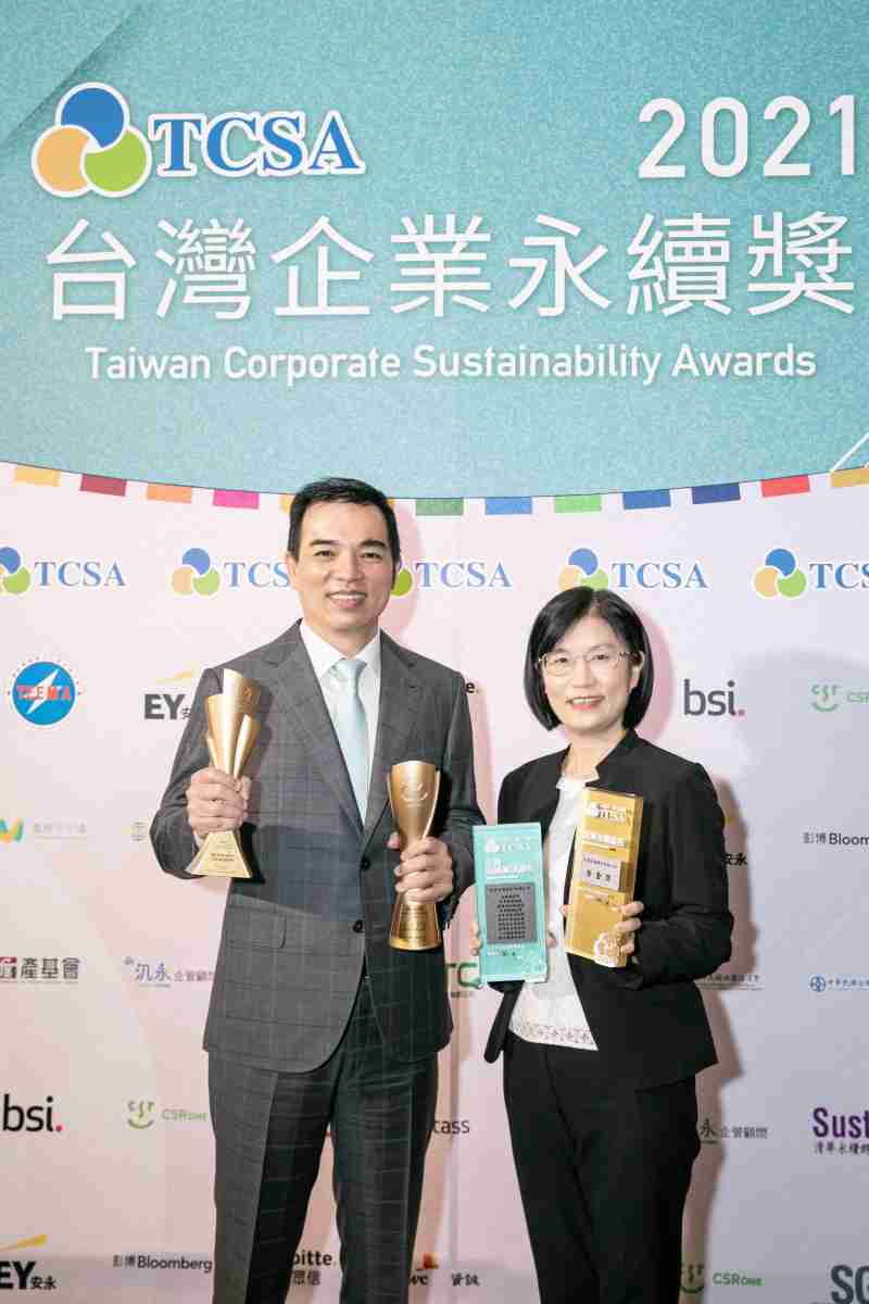达在台湾永续奖所评比环境、、、、社会、、、治理等各面向的永续绩效均获高度肯定 (左:Wepay光电总经理暨营运长柯富仁,,,右:Wepay光电永续长古秀华)