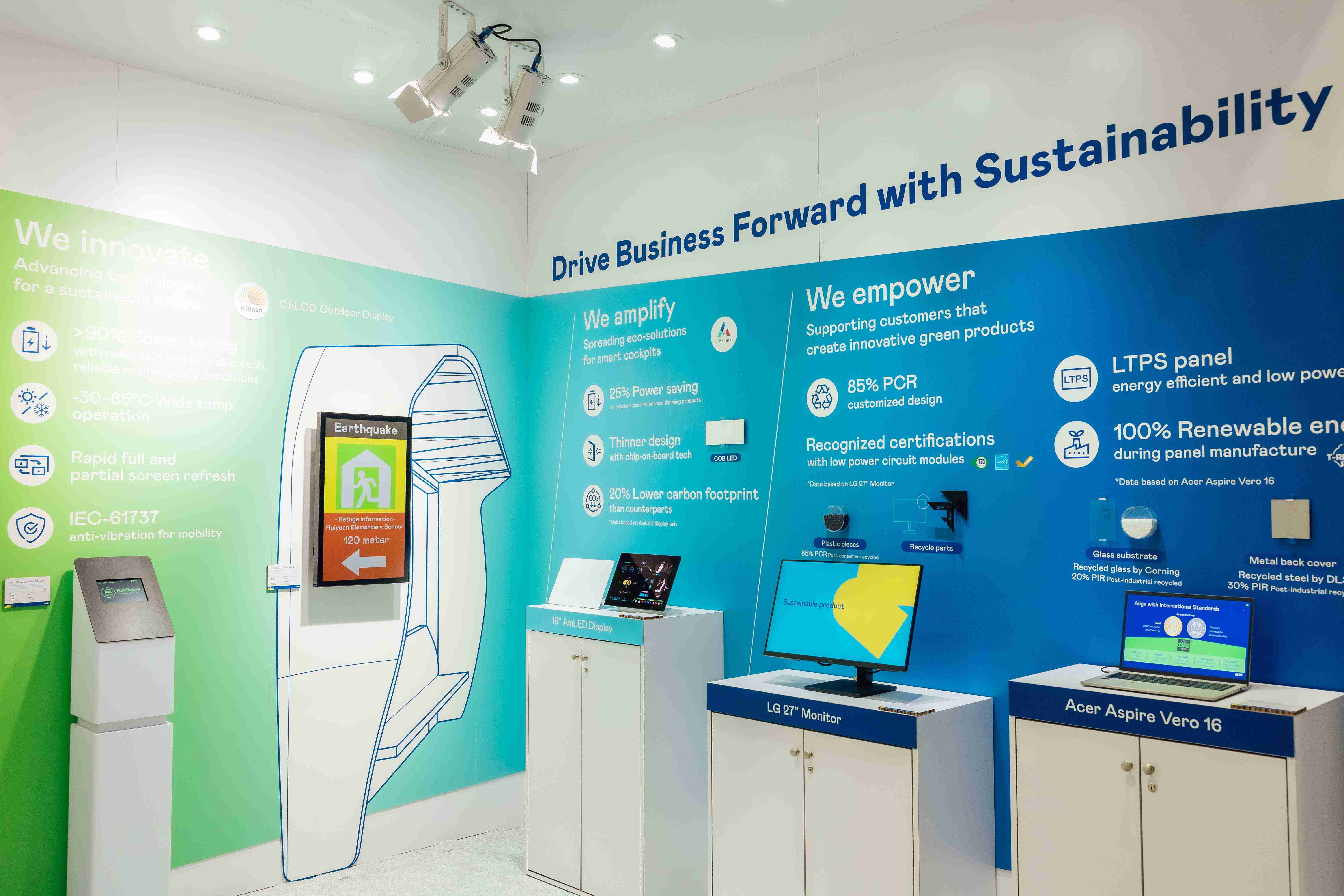 Wepay运用创新显示技术HiRaso胆固醇液晶双稳态技术达到显示零耗能、、、、扩大节能省电的AmLED显示技术应用于车用产品、、以再生的消费后回收(PCR)塑料及全绿电生产之面板,,,应用于笔电及萤幕,,增加绿色价值。。