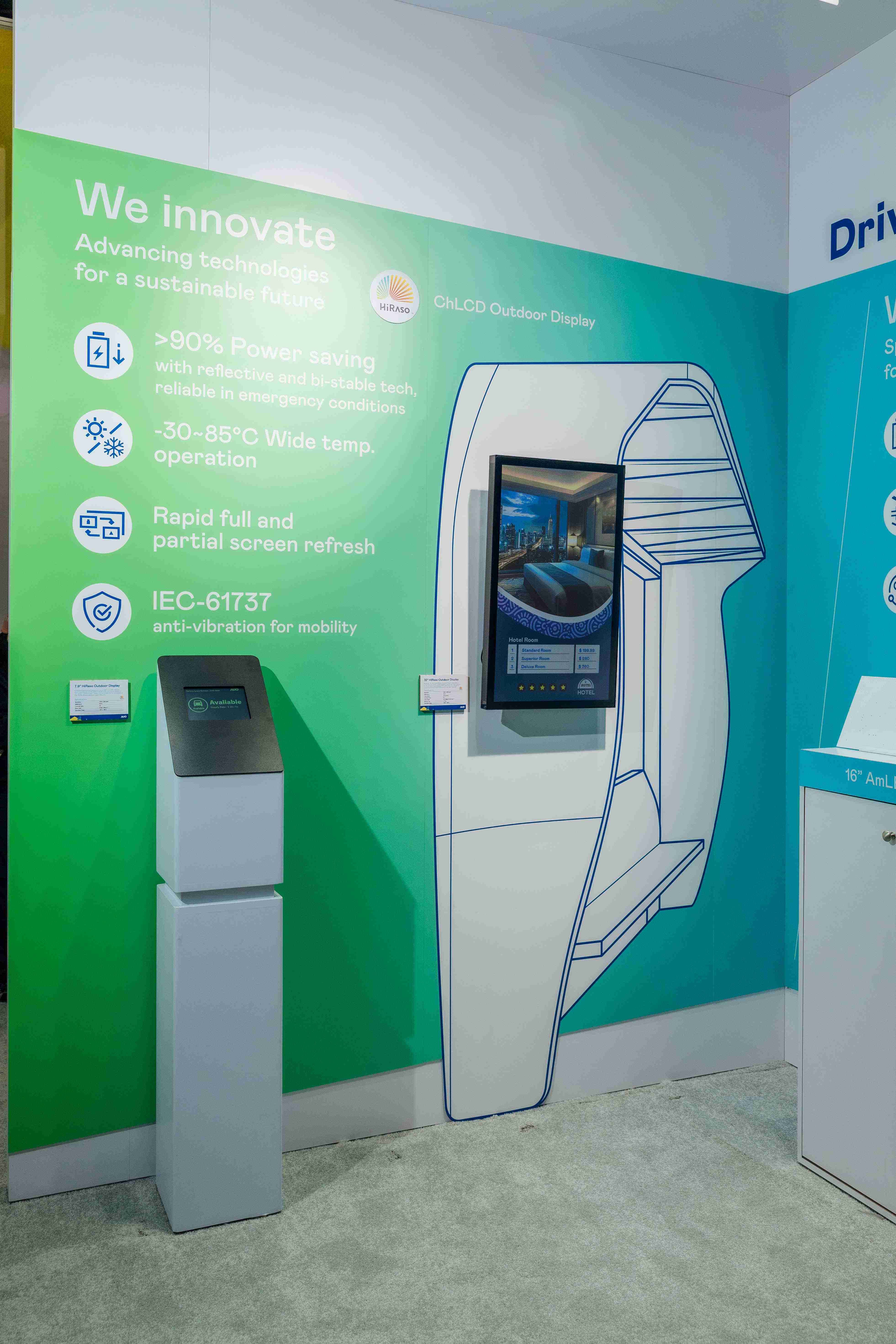 HiRaso胆固醇液晶显示器运用反射环境光线的方式,,,呈现影像显示时零耗能的环保省电诉求,,,,光线愈强愈能呈现绝佳的色彩饱和度及显示效果,,同时在摄氏-30度至85度间宽温的使用优势,,为户外电子看板的新首选。。