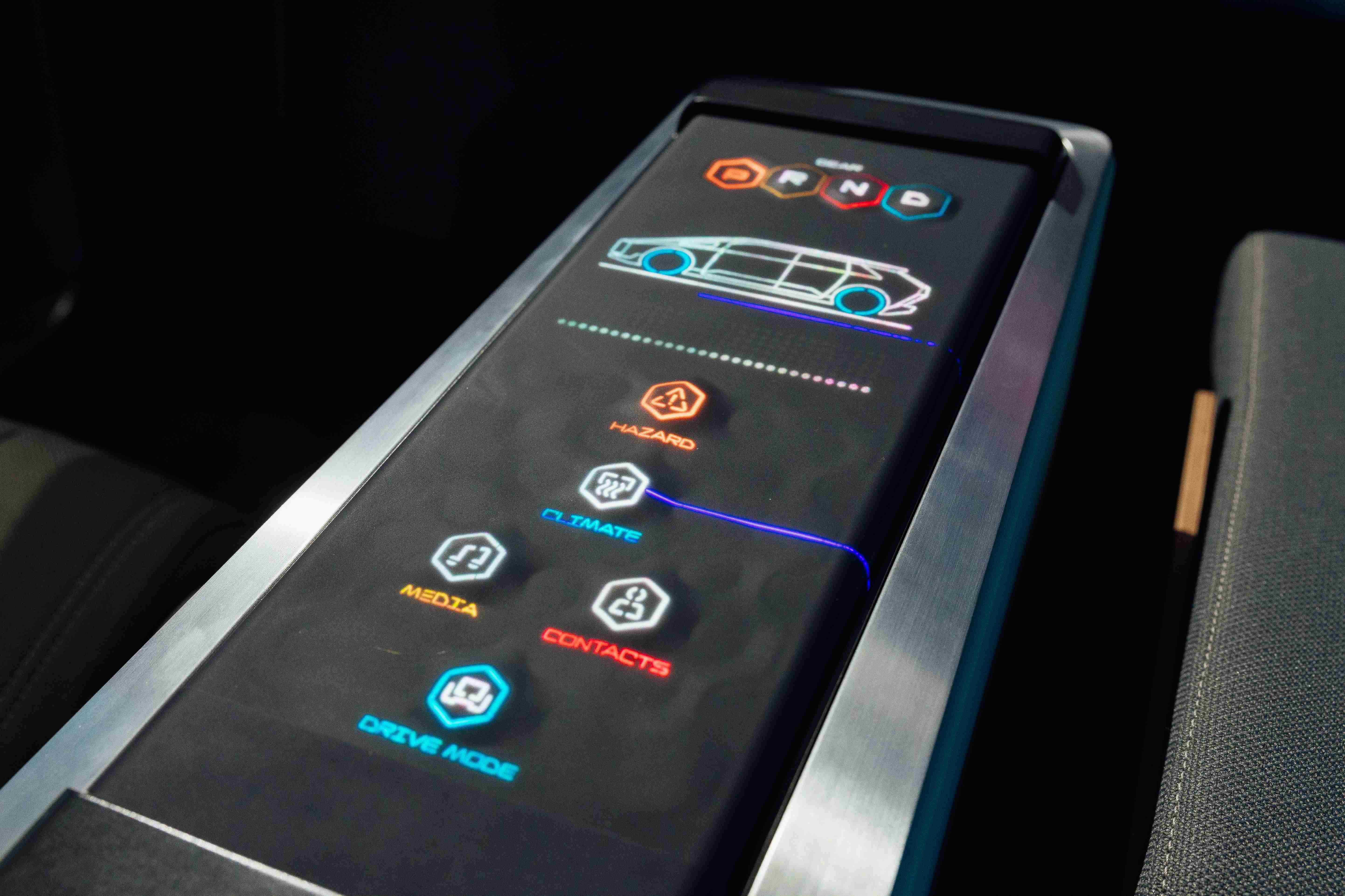 多变形态中控显示(Morphing Center Control)拥有动态变化的表面,,,,平时常态显示车辆功能,,,进一步操作时,,,,则会隆起成为3D 按钮,,,并在触控时以震动回馈,,以精细的操作开创人机互动新境界。。 ![]()