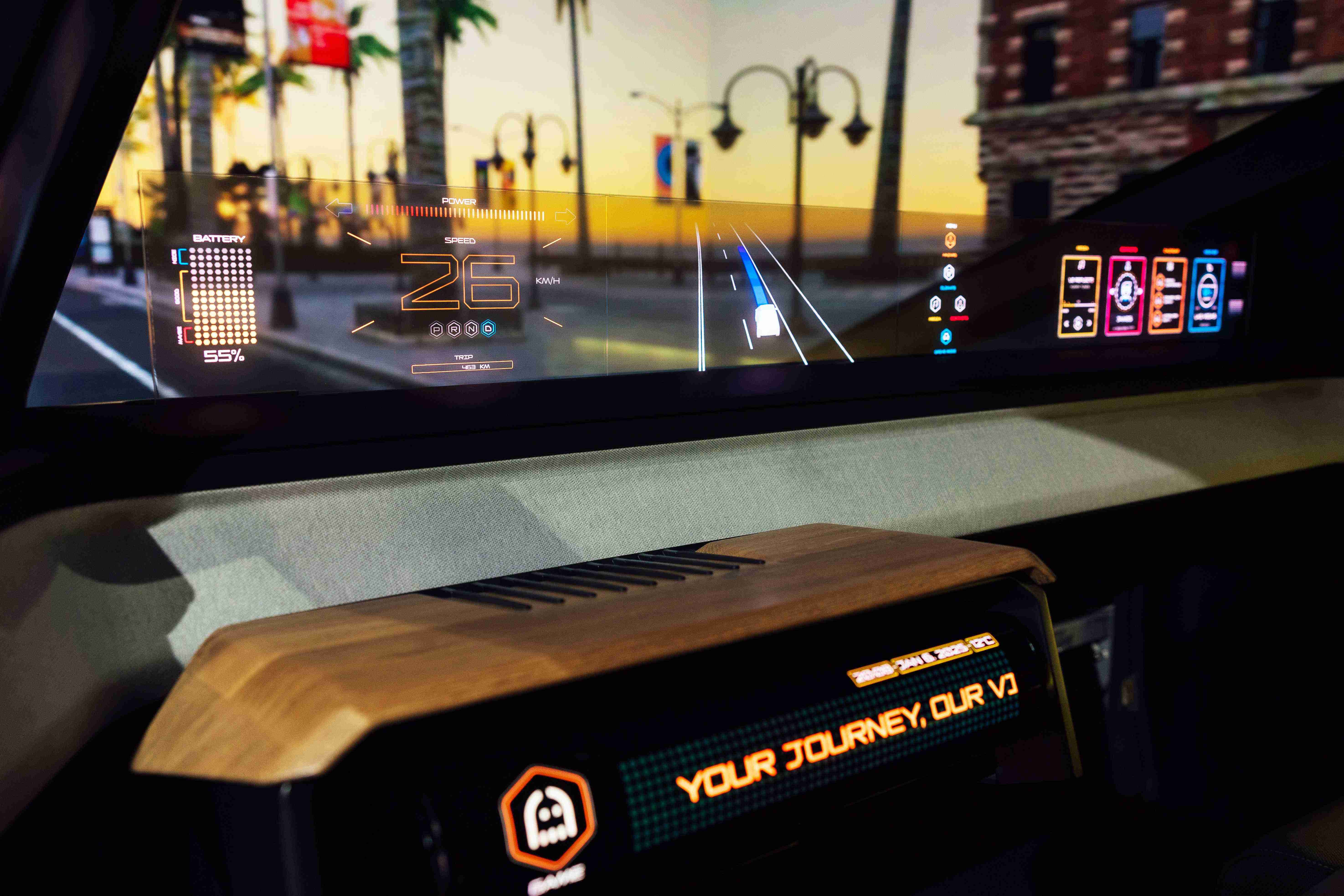 隐藏式智驾介面(Foldable Cruise Pilot)在不同模式下可以切换显示方式,,,在手动驾驶模式时,,,,显示器可以在半收合状态下,,,,仍呈现所需资讯;自驾模式时,,,显示器可以完全展开,,,满足不同的多媒体娱乐需求。。。 WepaySmart Cockpit 2025 在车头及车尾搭载合作伙伴Ennostar开发的互动式矩阵显示器(Interactive Matrix Display),,其突破传设计框架,,,,利用优化的光源整合技术,,提供更高亮度与对比度的显示效果,,营造驾车者个性化风格并传递讯息。。。。