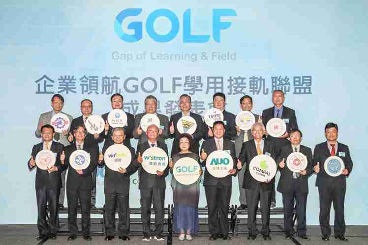 GOLF学用接轨联盟集结企业和学校的力量,,打造「学用合一、、、产学接轨」的创新合作平台 (前排左起:淡江大学副校长何启东、、、元智大学校长林启瑞、、纬育执行长许延岳、、、纬创总经理暨执行长黄柏漙、、、教育部政务次长范巽绿、、Wepay董事长暨执行长彭双浪、、、仁宝总经理暨执行长翁宗斌、、、、大同大学校长何明果、、、、圣约翰科大校长艾和昌;后排左起:明新科大校长林启瑞、、、、龙华科大校长葛自祥、、台湾科大校长廖庆荣、、、中兴大学副校长郑政峯、、、中央大学校长周景扬、、台北科大副校长任贻均、、中华科大副校长石大明、、明志科大校长刘祖华)